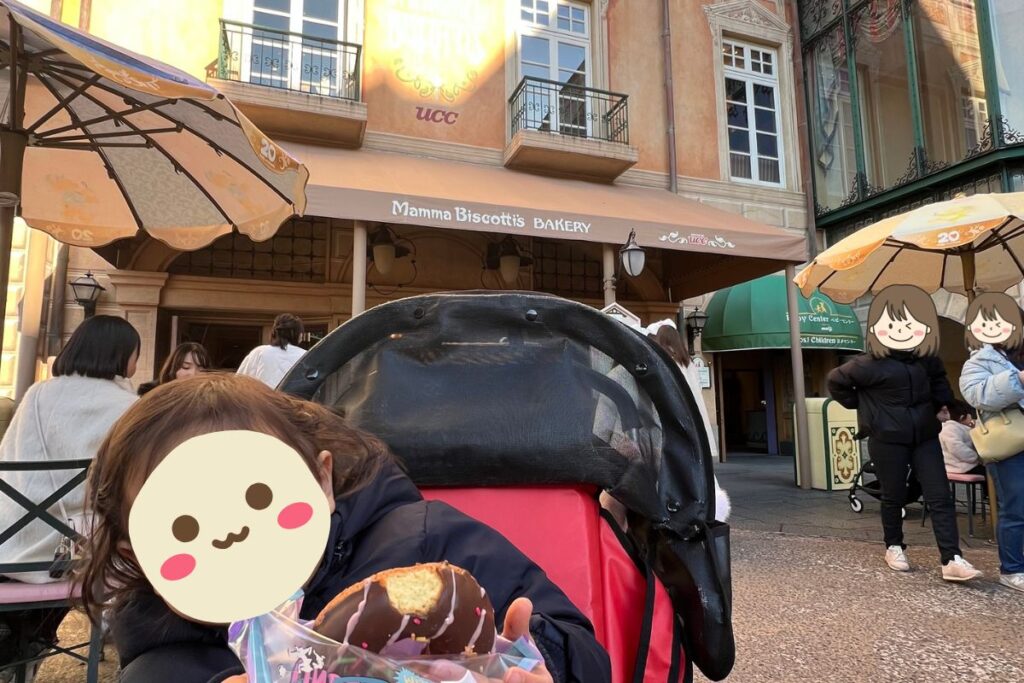 帰り際にもう一度あの美味しいパンが食べたくなって「マンマ」に寄ろうとしたのですが、お店の前には長い行列ができていて……。その列に並ぶ元気は残っておらず、泣く泣く諦めて帰りました。その時あらためて、「朝のあの時間は、贅沢で貴重な時間だったんだなあ」と染み染み感じました。人がまだ少ない静かなパークで、ゆっくり過ごせた時間、ワンオペでバタバタしがちな入園直後だからこそ、あえて立ち止まって正解でした。